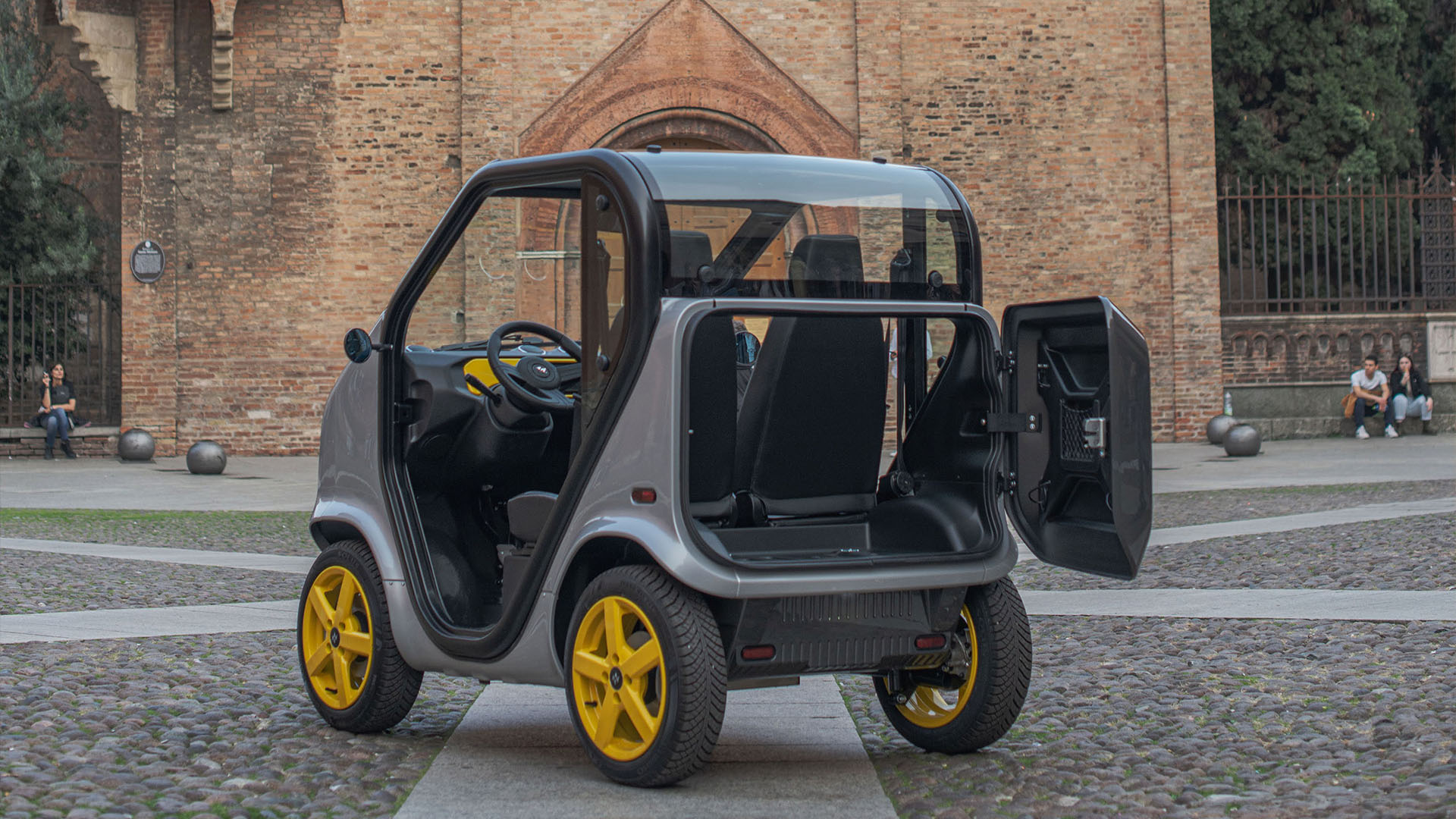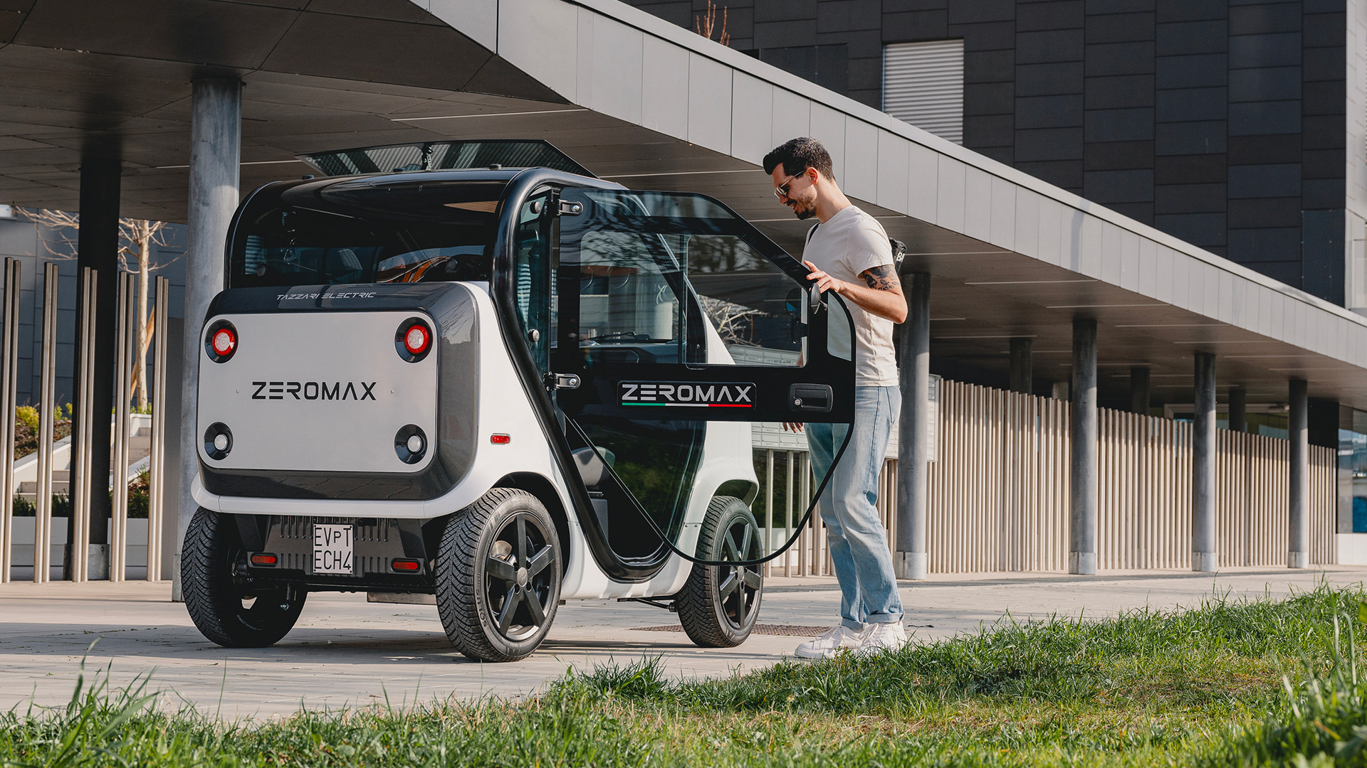 De Tazzari ZEROMAX is een compacte, volledig elektrische stadsauto uit Italië, ontworpen voor korte ritten en stedelijk gebruik. Hij combineert een lichtgewicht aluminium frame met een pittige elektromotor, waardoor hij wendbaar en efficiënt is in druk stadsverkeer.